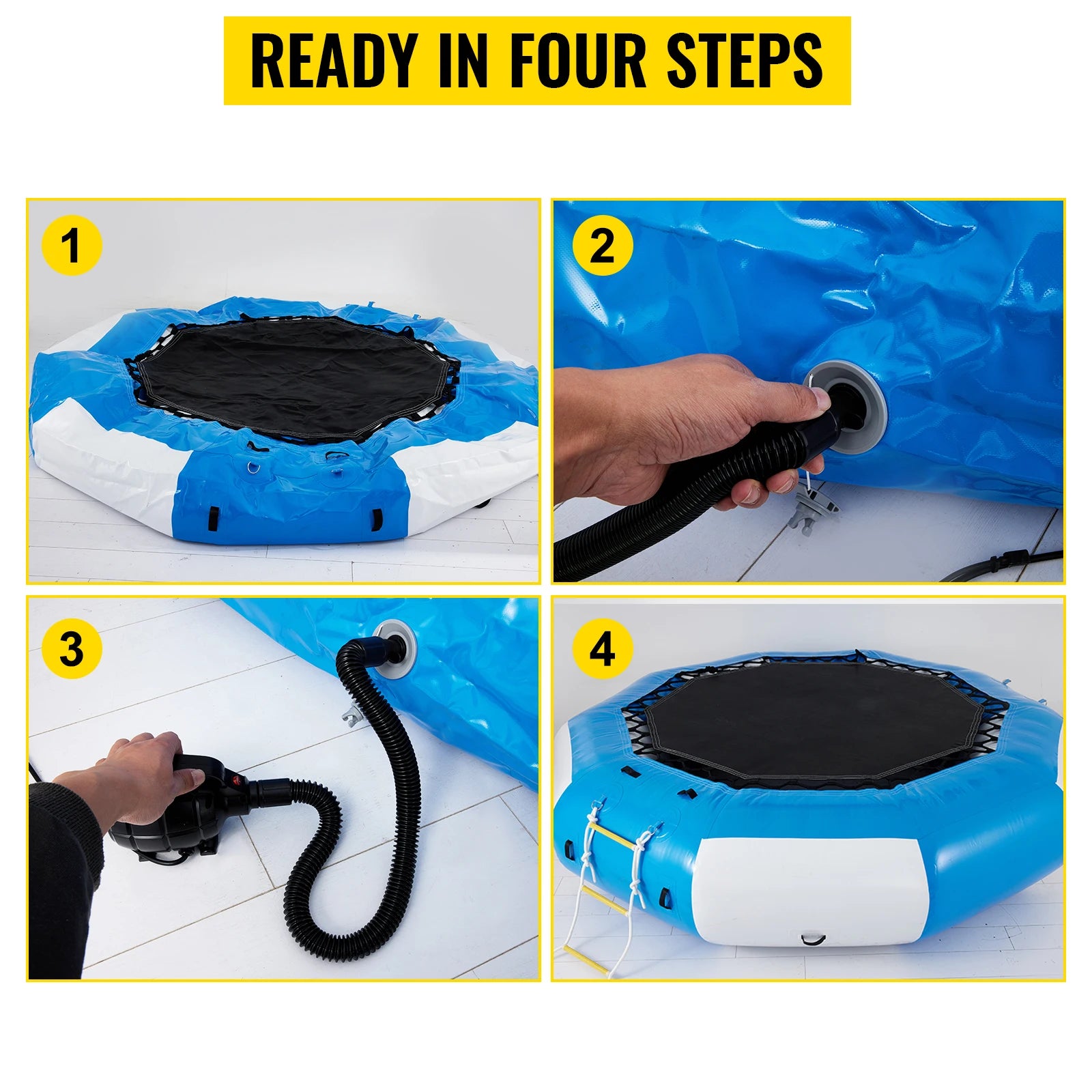 【EASY-ACCESS LADDER】- With one 4-step ladder, you and your children can quickly climb to the top of the inflatable water trampoline. Several built-in handles are made for easy moving.