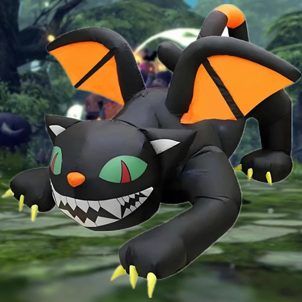 6 FT Halloween Inflatable Black Cat with Wings & LED Lights