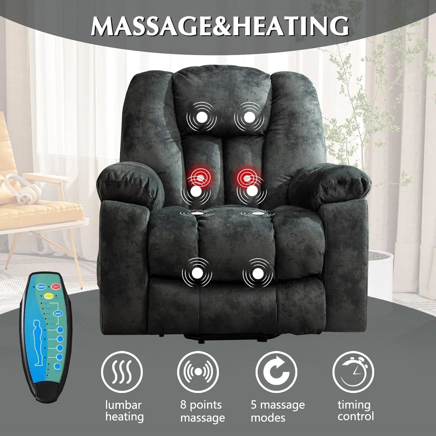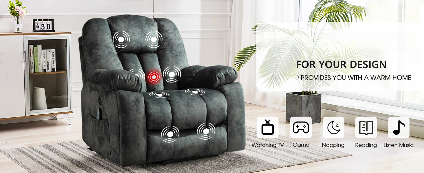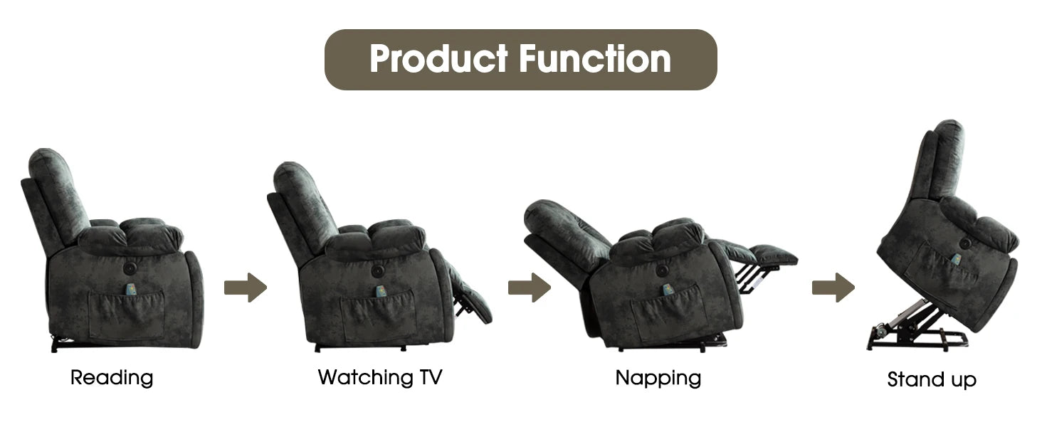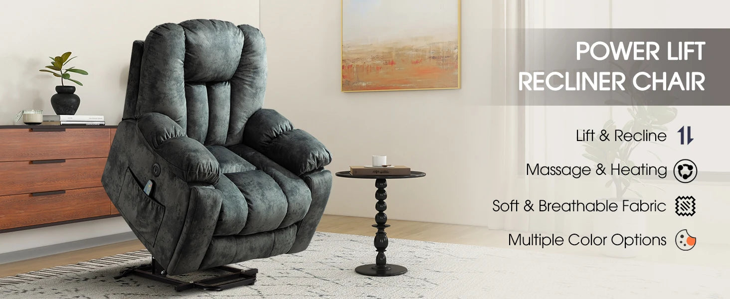 Large Power Lift Recliner Chair with Massage, Heat,and USB, Heavy Duty and Safety Motion