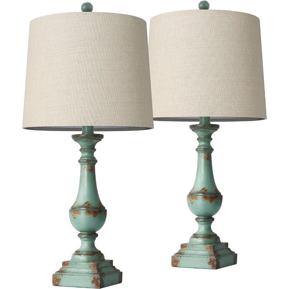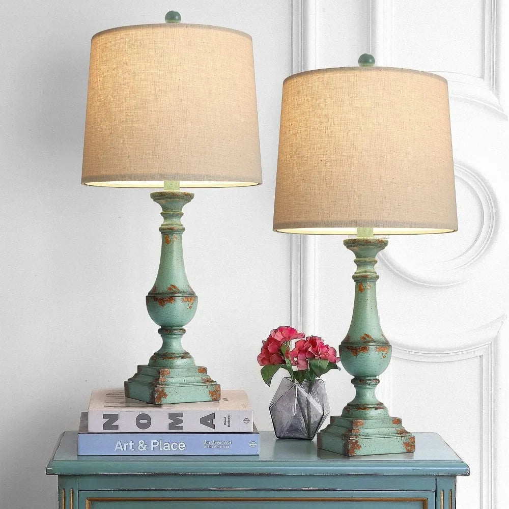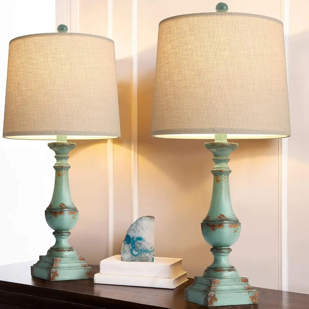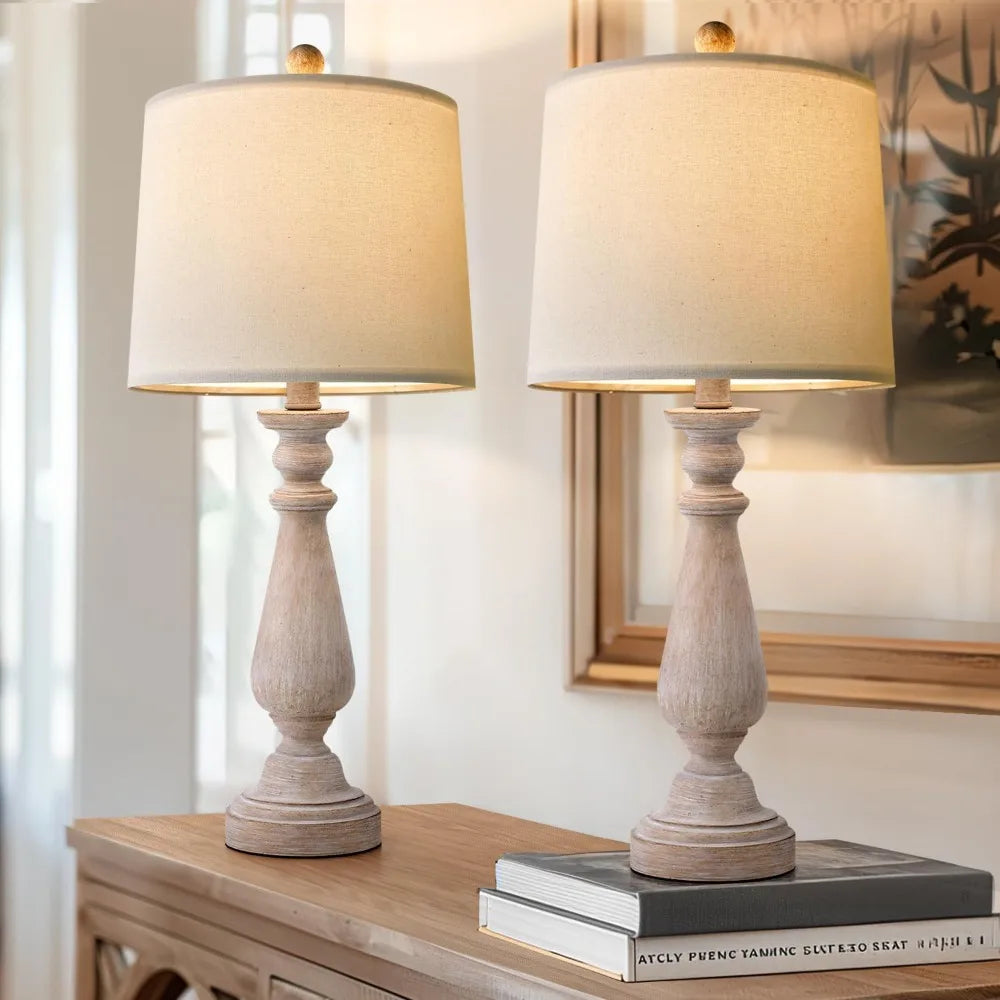 - Rustic & Vintage Table Lamp: The perfect combination of Beige Washed resin lamp body and linen lampshade presents a retro and elegant appearance. The classic design adds a touch of classicism to any corner of the house. (Assembly Required)