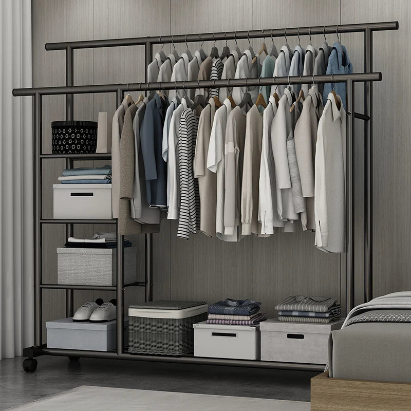 Clothing racks on wheels is integrated by garment rack, free standing shoe racks and umbrella rack. Great for organizing your clothing in bedroom or student dormitory, or drying clothes in laundry room, also a portable closet shelves in a boutique, showroom, retail store or flea market.
